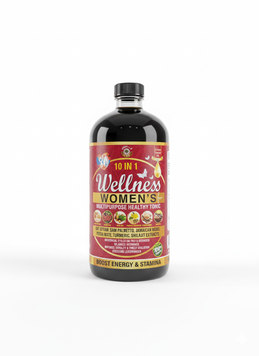Women’s Wellness Tonic by Al Riyan is a nourishing herbal tonic formulated to support female reproductive health and balanced hormones. This bitter blend combines traditional botanicals, including red raspberry leaf, chasteberry (vitex), dong quai, black cohosh, nettle, burdock root, and dandelion, to promote healthy menstrual cycles and natural hormone balance. These herbs provide iron, vitamins, and minerals that nourish the blood and support uterine tone while helping the liver metabolize excess estrogen.